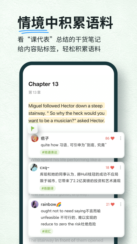 编辑点评:海量英文原版轻松读,大纲词汇、地道短语自动标注,主题阅读计划随心选。