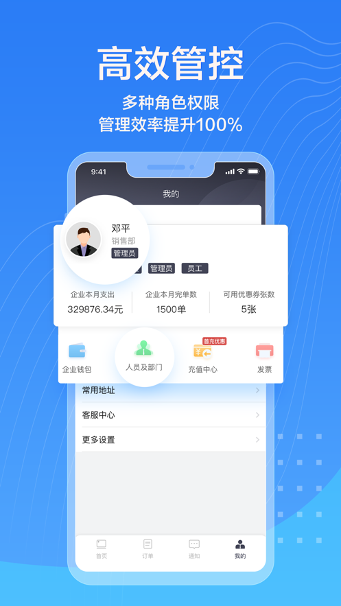 账号权限:提供管理员、员工等子母账号管理功能,配有限制费用、监控预算等九大账号权限.