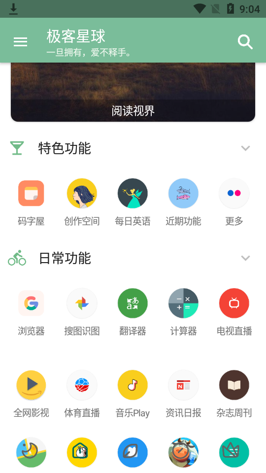 极客星球app是一款功能齐全,十分实用的应用软件。用户可以快速的搜索需要的资源,分为特色功能和日常功能,分类齐全,可以很好的满足用户的日常需求,有需要的用户欢迎下载体验哦。