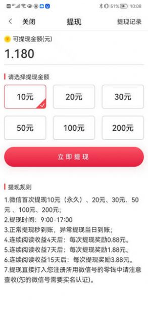 3、永久满10元起提,24小时内到账,每天17点前提取,一天一次。
