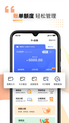 1、【账单额度 轻松管理】:办卡、查账、积分、额度、还款、权益预约…轻松享受7*24小时管家级信用卡服务。