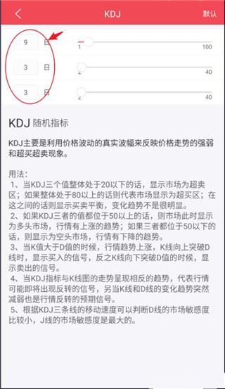5. 在下拉的“指标设置”页选择“KDJ”齿轮按钮;