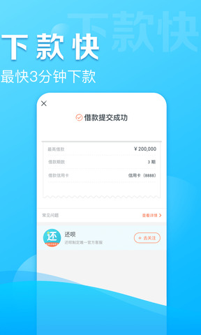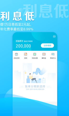 还呗app下载安装是一款很好用的信用卡分期手机应用,可以支持信用卡的借款入帐,也可以提供高额借贷服务,用户可以在购物、还款等场合,享受更加灵活、方便、高效的分期生活服务。