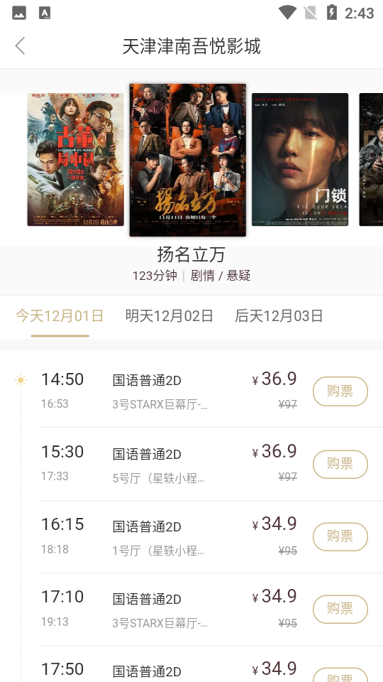 6、能够实时为您定位,并根据你的位置为您实时推荐你附近的影院供您选择购买电影票;