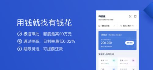 1、有钱花app在申请表上方也非常高,这样你就可以得到一大笔资产。