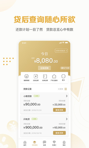 还款:支持当日紧急还款、逾期还款、预约提前还款
