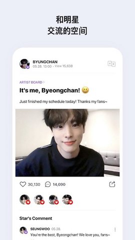1、在世界任何地方,你都可以通过Vlive与明星共度这一刻。确认你在任何地方都没有见过的恒星的新图像。