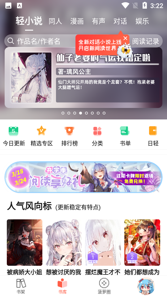 1、菠萝包轻小说app和多家网络阅读平台合作,更新速度直追最新;