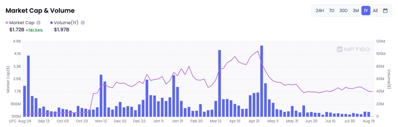 冯德伦购入无聊猿正值该项目地板价创8个月新低之际。NFT.GO数据显示,无聊猿地板价目前已来到66.9ETH(现约10.8万美元),创下今年1月3号以来的新低,较今年5月初153.7ETH(约合24.8万美元)的历史高点已腰斩56%。