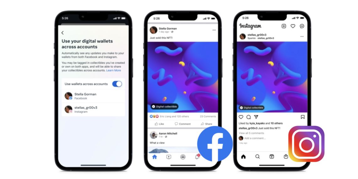 社群巨头Meta继本月初宣布Instagram正将其NFT计划扩展到非洲、亚太地区、中东和美洲等100个地区之后,今(30)日清晨再发推表示扩大支持在Facebook分享的功能:我们正在引入横跨Facebook和Instagram分享数字收藏品的能力。您现在可以将数字钱包连线到任一应用程序,以便在两者间共享您的NFTs。