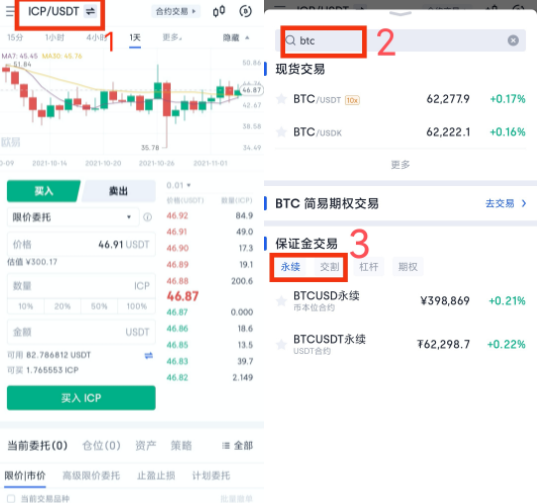 3. 完成开通USDT本位永续合约后,选择需要交易的品种合约,进行资金划转。
