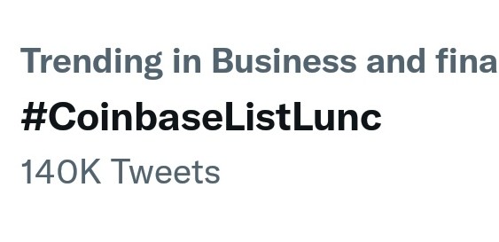 而继上次的「#BoycottBinance」尝试后,这次LUNC社群将目标转向Coinbase交易所,要求Coinbase上架LUNC代币,并在每一则推文中使用了「#CoinbaseListLunc」的标签呼吁整个社群共同响应,想不到短短不到一天的时间内,就吸引超过14万则推文转发来响应。