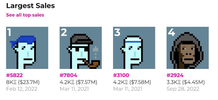 CryptoPunks于2017由Larva Labs推出,作为以太坊NFT头像系列的元祖,一直是最具价值和影响力的NFT品牌系列之一,这也是为什么在严峻的金融环境中,仍有不少10万美元以上的CryptoPunks在成交。