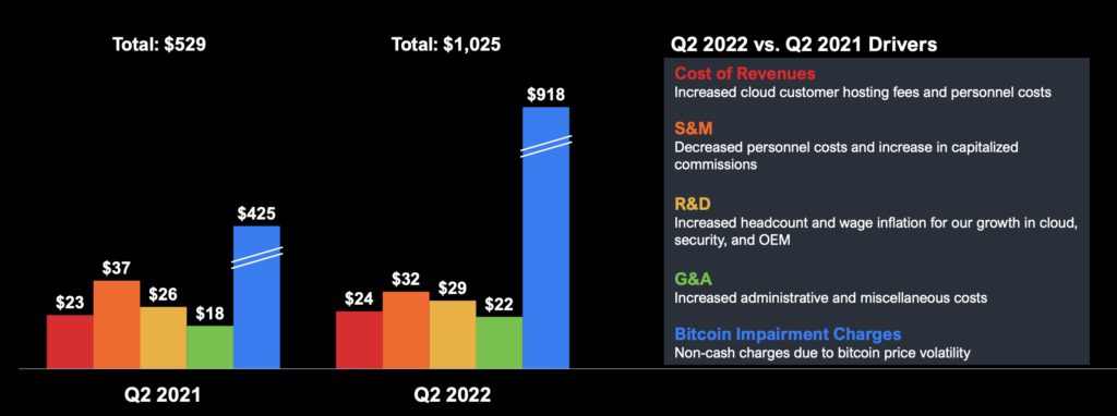 与此同时,微策略也在昨日公布第二季度财报。加密货币市场的低迷让该公司押注比特币的投资遭受巨大的账面损失,第二季度比特币的减值损失纪录为9.18亿美元。