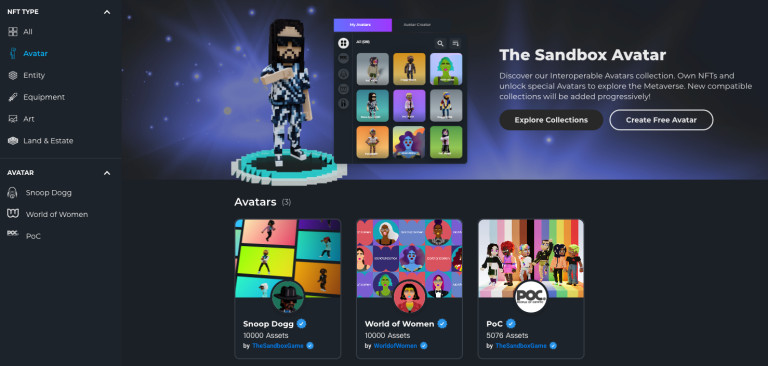 币圈子(120BTC.com)讯:元宇宙沙盒游戏The Sandbox今日宣布于其游戏市场推出新的角色购买分类,这些角色未来可于游戏内使用,目前共有三种NFT专案,分别为Snoop Dog、World of Women及People of Crypto。