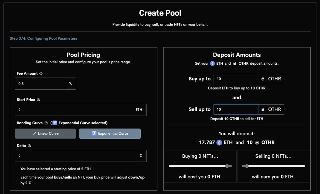 灵活性:随着市场条件的变化,LP可以随时调整其资金池的参数,像是调整NFT的价格范围、当前流动性池价格、买卖时收取的交易费用比例等。