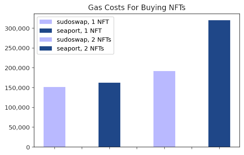 节省Gas Fee:与多数平台相比,于Sudoswap上交易支付的Gas Fee较低,购买数量越多时越明显。