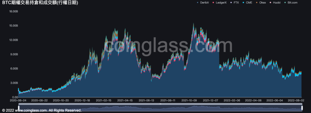 虽然以太坊价格并没有站稳两千美元,但近期以太坊期权交易的需求激增。据Coinglass数据显示,本周以太坊期权持仓量总额一度飙破83亿美元、创下历史新高,几乎是一个月前的三倍,目前稍有回落在80亿美元附近。
