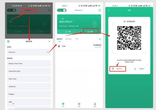 在Coinhub钱包内切换至对应公链,,若常用的多条EVM公链均使用同一地址,则只保存一个EVM公链收款地址即可,流程如下: