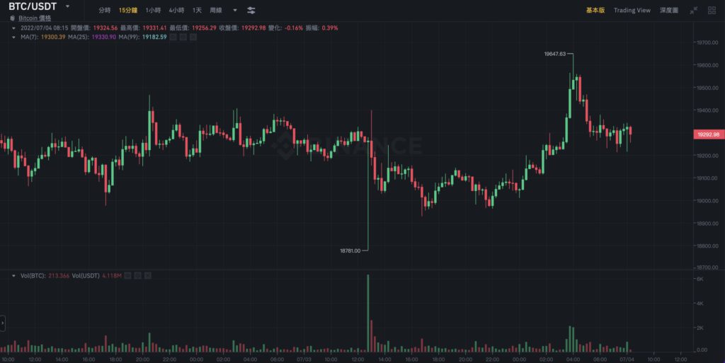 比特币(BTC)今日清晨再度尝试站上2万美元大关,一度触及19,647美元,但涨势无法持续而下挫,已连续四日持续在1.9万美元附近窄幅震荡。截稿前现报19,292美元,近24小时上涨0.24%;以太坊则报1,072美元,近24小时上涨0.8%。