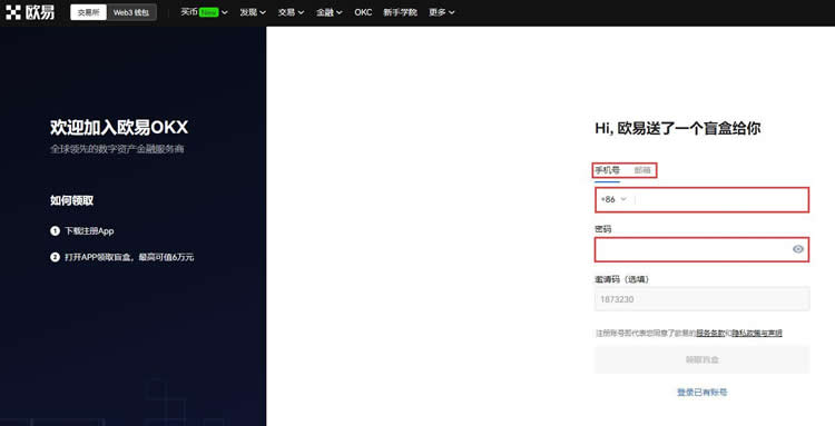 电脑端芝麻开门OKX注册教程流程详解 1.注册(进入官网)点此进入芝麻开门OKX官网,用户可以选择使用【手机号】或者【邮箱】,按提示完成注册即可。
